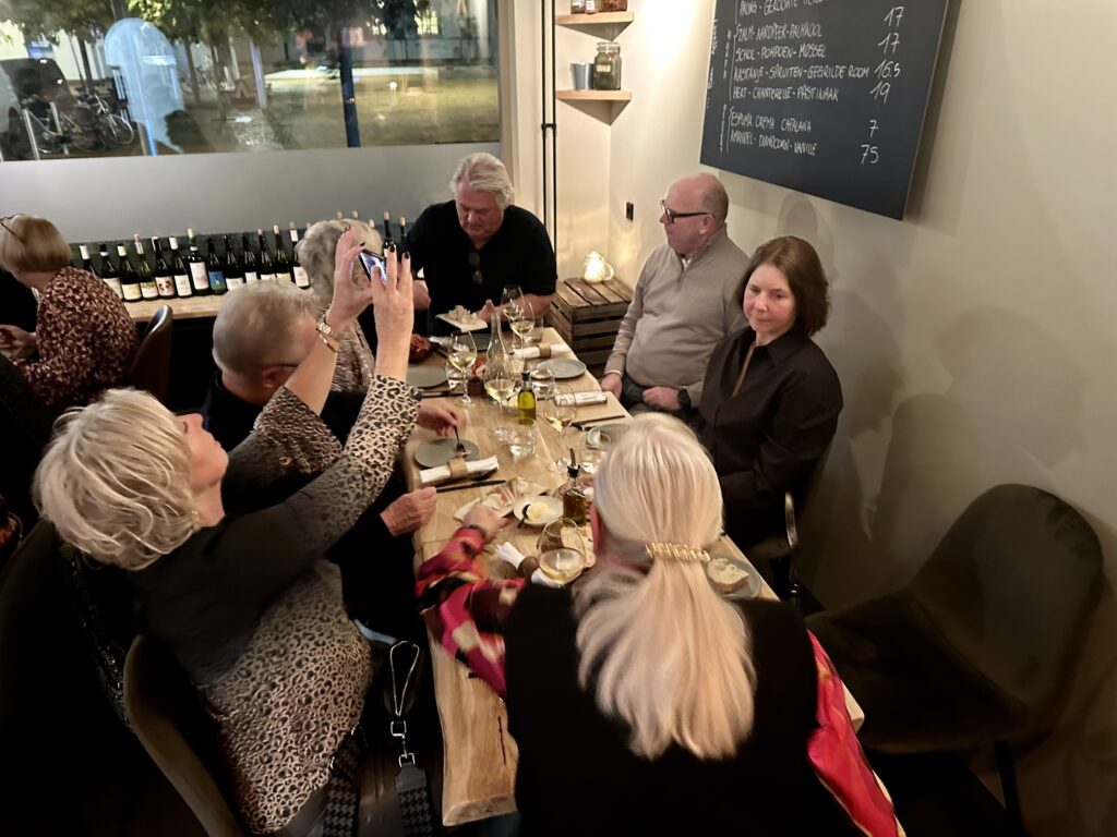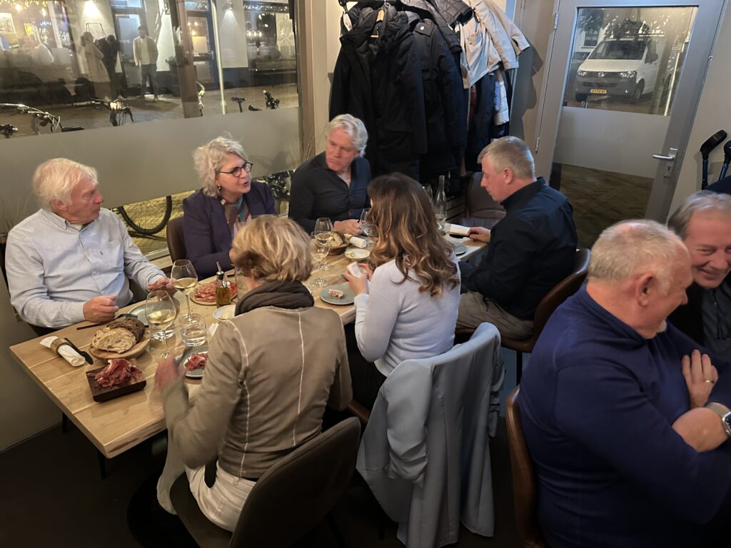 Het avondprogramma van Durbuy is een thuiswedstrijd op het Andreasplein in Katwijk. Sans Souci is een soort mini restaurant gedreven door twee enthousiaste mensen met lekkere gerechtjes. Paul van den Oever bracht mij op het idee om te proberen de hele zaal af te huren om lekker ongestoord met de eigen groep aan tafel te kunnen. Na een gesprek met de ondernemers waren ze gelijk positief, maar wel met de melding dat 24 wel de max is wat past. We zijn uiteindelijk met 22 en we laten ons verrassen wat er op het menu zal staan. Er zijn op voorhand geen bezwaren zoals lactose intolerantie, notenallergie, glutenallergie of andere welvaartsziekten. Ik weet dat Lenie voorzichtig is met mosseltjes en dat Corwin niet van haring houdt. Dat hij geen enkele vissoort naar binnen kan krijgen is nieuw voor mij, sorry Corwin. Zo leer je elkaar na 20 jaar toch nog eens goed kennen. Een goedmaker is natuurlijk dat hij de jaarwinnaar van onze club is, voorwaar geen kattenpis. Er zijn elke maand 11 andere leden die je het vuur aan de schenen leggen, proberen je in de flight van je stuk te brengen of je naar een baan te brengen die echt niet bij je swing past. Maar Corwin neemt af en toe een lesjes en…….. blijft bij de les (op de baan).